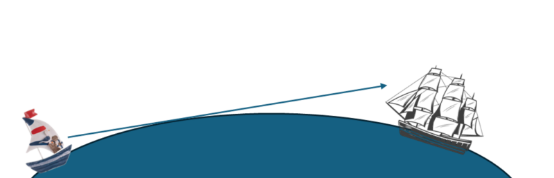 Der meinte nur: „So rund wie ein Apfel! Das kannst du ganz einfach selbst nachprüfen! Du bist doch schon mit deinem Vater auf einem Segelschiff übers Meer gefahren. Wenn euch ein Schiff am Horizont entgegenkam, was sahst du zuerst?“ „Den Mast, Meister“, rief Martin. „Das Schiff tauchte dann nach und nach aus den Fluten auf!“ Meister Molitor nickte. „Na, siehst du, das ist der Beweis. Wäre die Erde flach wie eine Scheibe, würdest du das Schiff ja in der Ferne als kleinen Punkt sehen, der auf dich zukommend immer größer wird.“