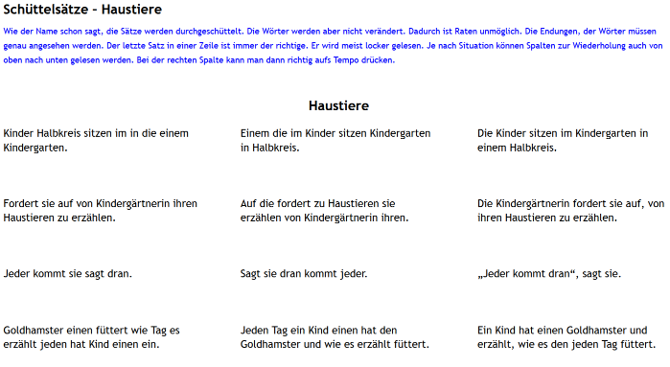 Schüttelsätze, um die schnelle Worterkennung zu üben und das Raten abzustellen – Ordner: Symptome – Ratetechnik – Schüttelsätze