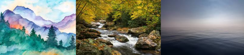 Im Ge|bir|ge gibt es vie|le Quell|en.