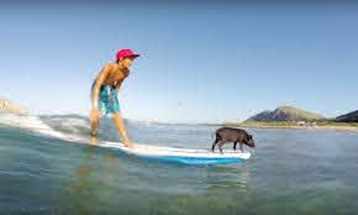 Ein auf den Wellen reitendes Schwein sorgt in Hawaii für Aufregung. Das Schwein mit dem Namen Kamapua liebt es, mit seinem Herrchen über die Wellen zu gleiten. Es gibt ein großes Aufsehen, wenn die beiden am Strand auftauchen. Kamapua ist nicht wasserscheu. Das stellte sich heraus, als das Tier aus Versehen in den Swimmingpool seines Besitzers fiel. Es schwamm sofort los und war vom nassen Element begeistert. Inzwischen hat das surfende Schwein viele Fans.