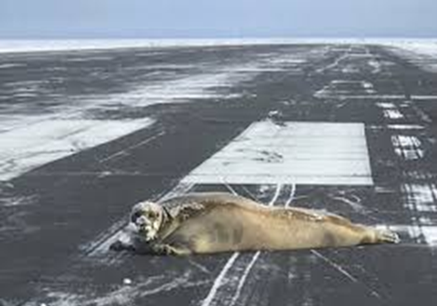 Gestrandet, aber nicht am Strand, wie es sich für eine Robbe gehören würde. Gestrandet ist die Robbe auf dem Rollfeld eines Flughafens. Der Flughafen gehört zu einer Stadt im amerikanischen Bundesstaat Alaska. Die Stadt ist eine der nördlichsten Städte der Welt. Der Flughafen dieser Stadt befindet sich nur etwa 400 Meter vom Ufer des Polarmeeres entfernt. Die Robbe hat sich während eines Schneesturms offensichtlich in der Richtung geirrt. Tierschützer brachten das 200 Kilogramm schwere Tier mit einem Motorschlitten zurück an den Strand.