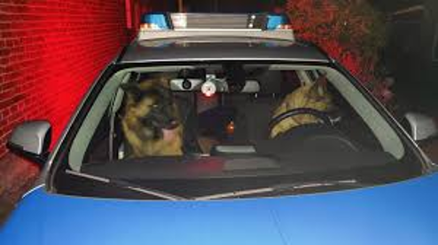 Als die Polizisten aus ihrem Auto ausstiegen, sprangen zwei Hund auf die Sitze.
