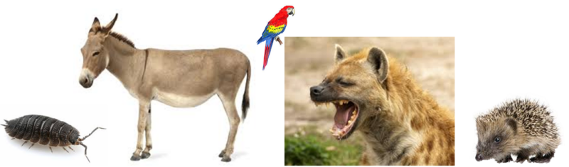 Tierquatsch 05 Esel, Kellerassel, Papagei, Igel, Hyäne