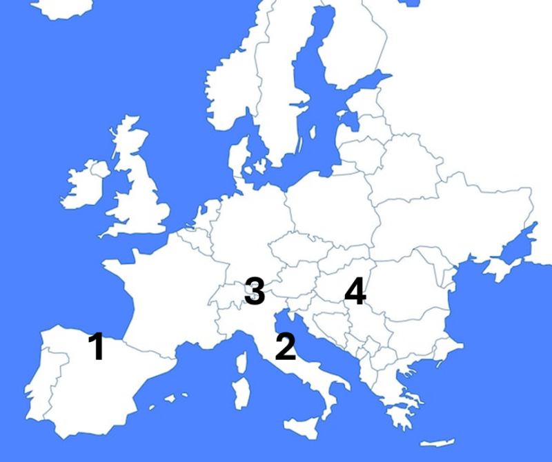 Wo liegen die Alpen? Welche Nummer trifft zu?